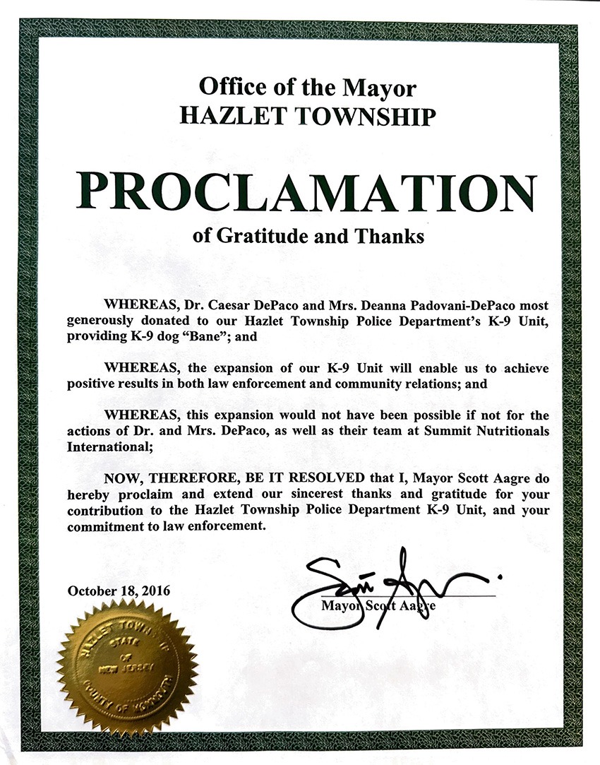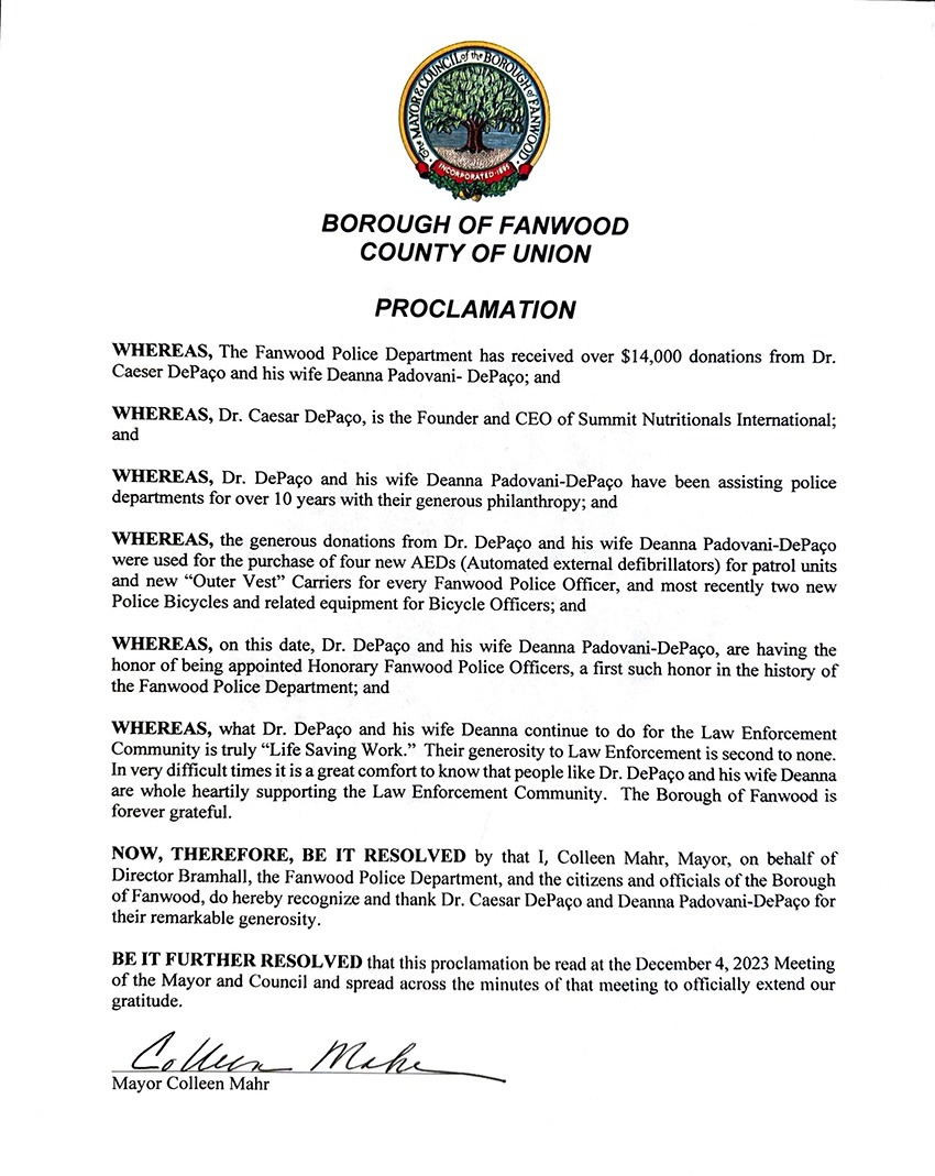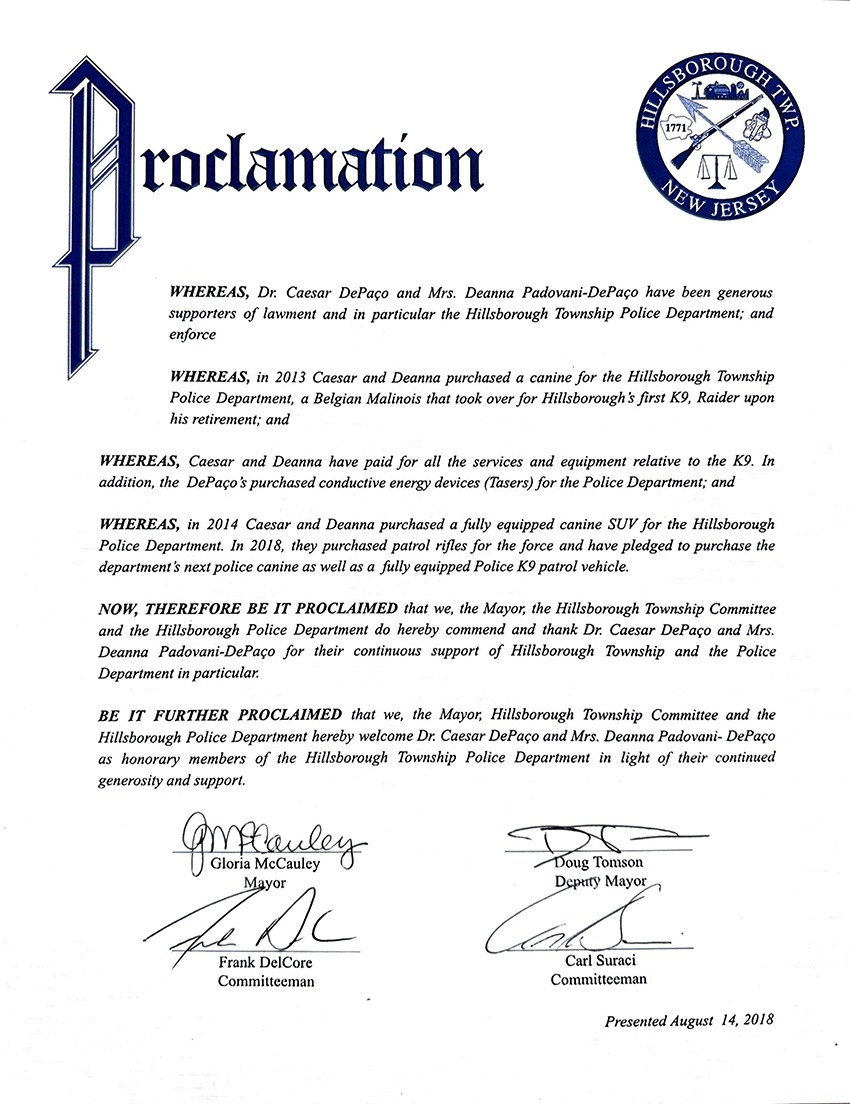 Por entre as proclamações de César DePaço encontram-se entidades de serviço público como Departamentos de Polícia, Assembleias e Câmaras Municipais de diferentes bairros, cidades, condados, distritos e municípios do Estados Unidos da América.