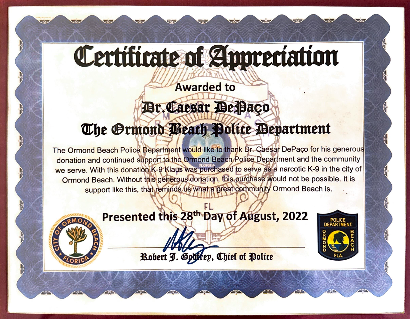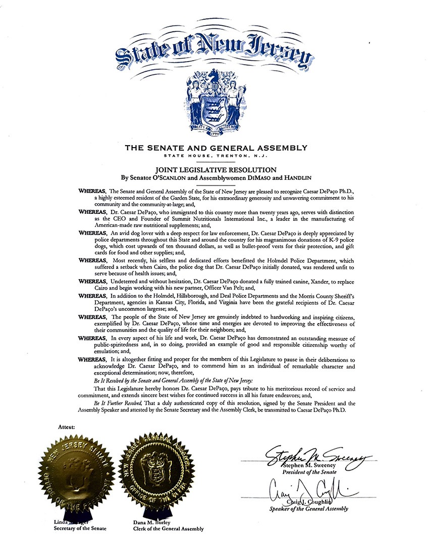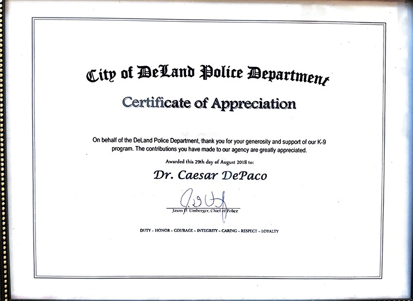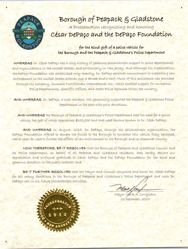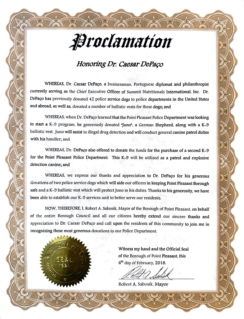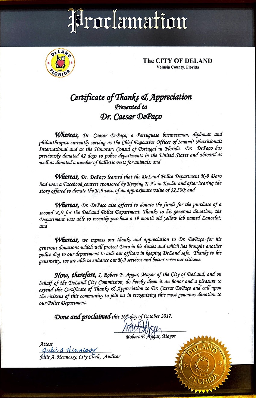 Desde o Departamento da Polícia da cidade de DeLand, no Estado da Flórida até ao reconhecimento público proclamado em Assembleia Geral do Estado de Nova Jérsia, as proclamações de César DePaço chegam hoje a ser perto de uma dezena.